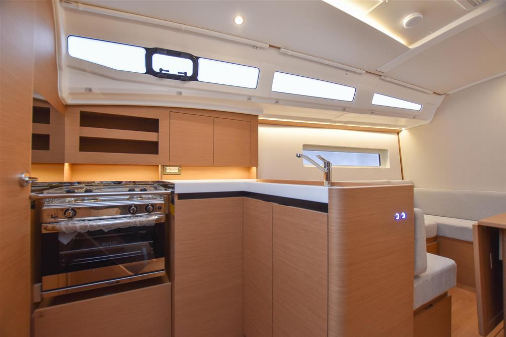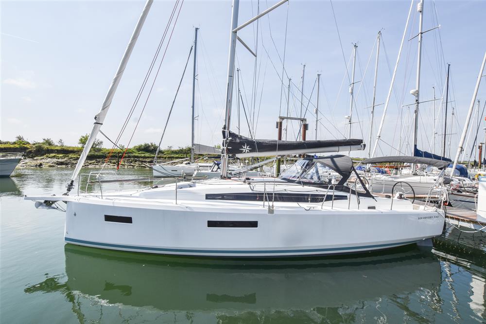 Designed by naval architect Marc Lombard with interior styling by Piaton Bercault, the Sun Odyssey 380 complete with the award-winning walk-around deck, follows the same design trend of its predecessors the Sun Odyssey 410, 440, and 490. Designed with performance in mind, the Sun Odyssey 380 features a powerful hull with a long graceful waterline. A large cockpit, twin wheels, dual rudders, an integrated bowsprit, and a high aspect Selden rig combine to deliver an exceptional sailing experience that even the most competitive sailor will appreciate. Engineered for choice with a variety of cabin configurations available, the Sun Odyssey 380 features a traditional layout in a contemporary style. Whether overnighting, entertaining, or day sailing, the Sun Odyssey 380, like the 410, 440, and 490, strikes the perfect balance between performance and comfort.