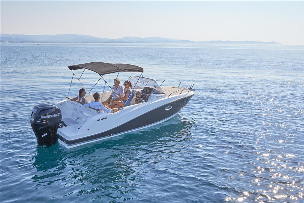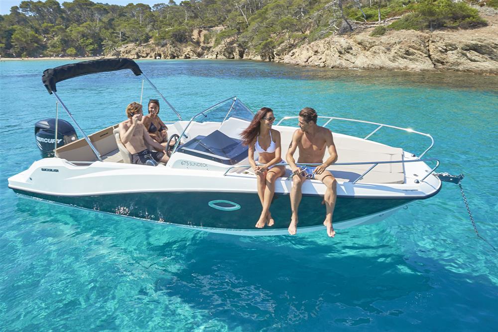 The Quicksilver 675 Sundeck can be specified with a range of Mercury outboards from 115hp up to 225hp.