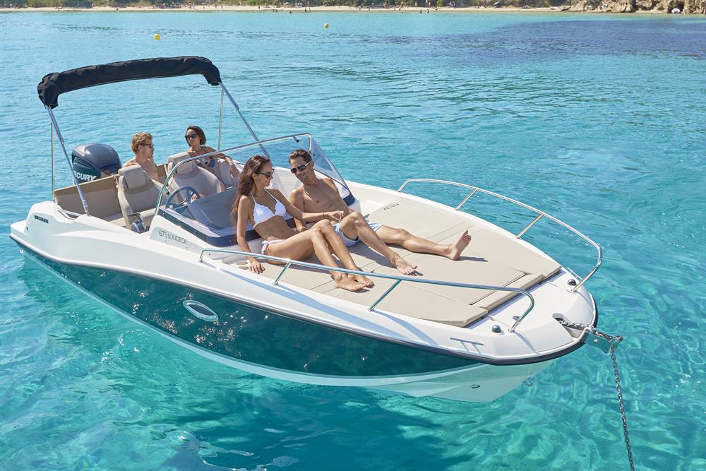 The Quicksilver 675 Sundeck?s updated, contemporary design wows in any water. And there?s much more than meets the eye. Jump aboard to experience for yourself how space, comfort and ergonomics come together. For example, the helm now makes better use of the available surface, is easier to work with and has improved functionalities. Along with you behind the wheel, there?s room for up to 8 passengers who want to soak up the sun.
