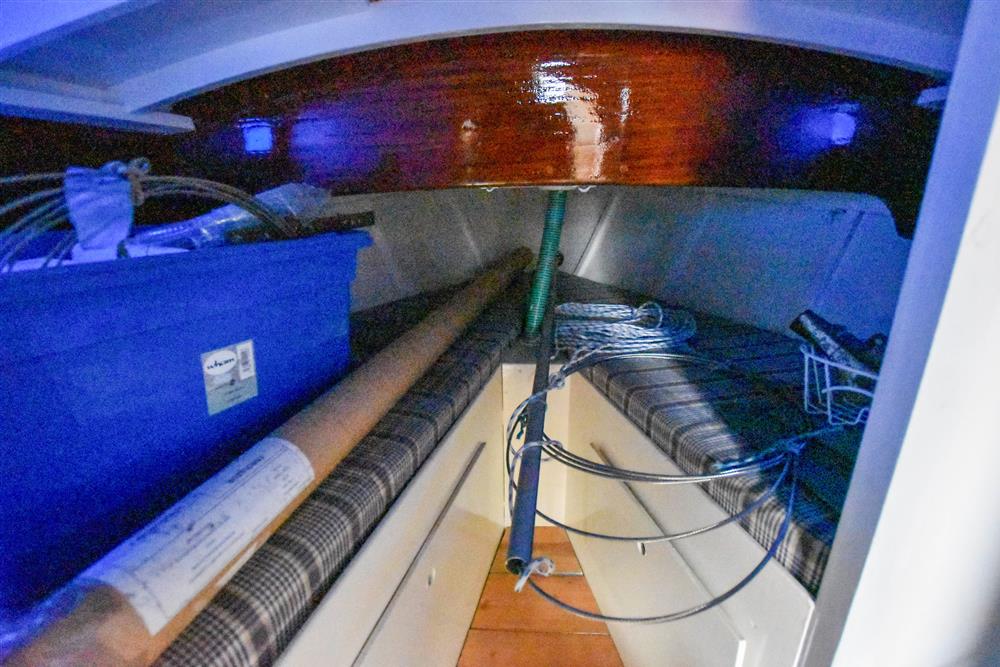 Masthead rigged Bermudan sloop. Deck stepped wooden mast and boom. Stainless steel standing rigging (age unknown). Terylene running rigging. Slab reefing mainsail system. Headsail furling system (new). Two sheet winches.