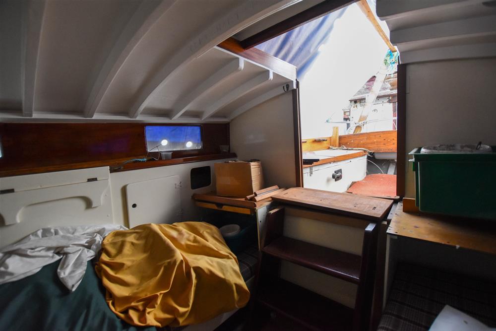 Located behind the companionway, is the Yanmar 1GM10 marine diesel engine. Single cylinder, 10hp, naturally aspirated. Single lever controls. Electric start. Shaft drive. Seawater cooled.